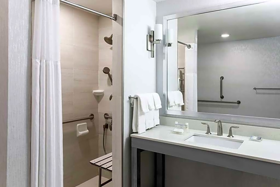 2 QUEEN MOBILITY/HEARING ACCESSIBLE RI SHWR, VIS FIREALRM/DOOR/PHN ALRT, COMP WIFI-REFRIGERATOR-MICROWAVE- POD COFFEE